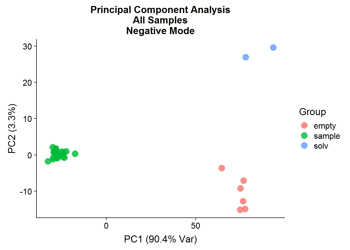 - Another thing that will pop up throughout, is the idea of the two “positive” and “negative” mode datasets. This has to do with instrument settings and how it detects molecules. Mass spectrometers can only detect and measure charged molecules, but molecules can have either positive or negative charges. Negative mode simply means that the instrument only detects and measures negatively charged molecules, while positive mode is for positively-charged molecules. Some molecules can be measured in either mode, and the data from positive and negative mode can be used as corroborative evidence. But some molecules can only be detected in one mode or the other, which is why both datasets are needed. The methodology can vary from lab to lab, but my lab usually runs each sample at least twice, once for each instrument mode, which results in two separate datasets.