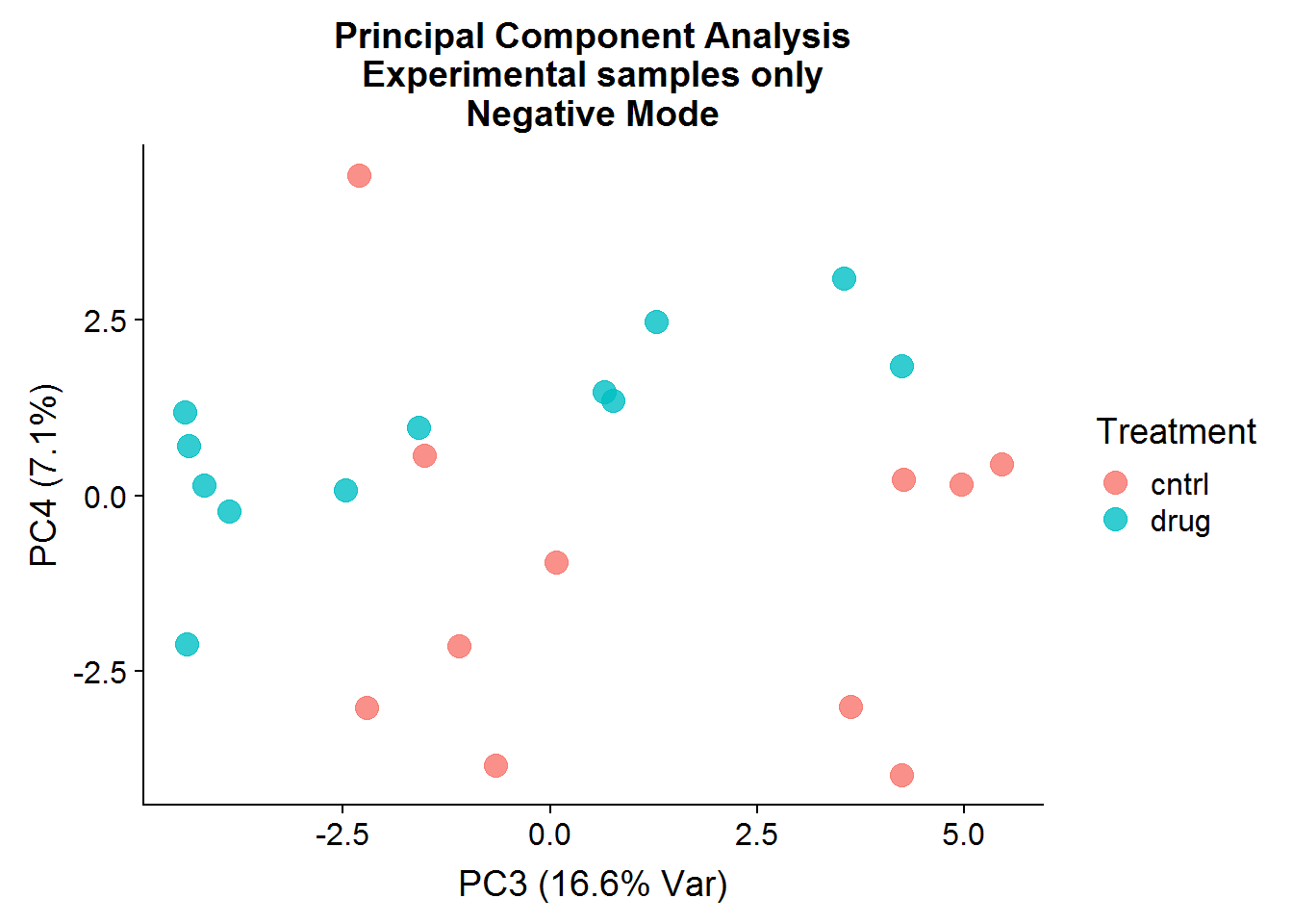 The overall goal of the following analysis is to determine which of the compounds detected and quantified were changed in abundance after drug treatment.